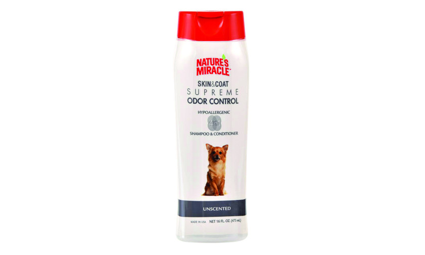 This two in one shampoo and conditioner is soap-free, contains no dyes or parabens, is safe to use with spot-on flea and tick products and is ideal for sensitive skin. There are four special benefits of this shampoo: it neutralises a wide range of odours, deodorises, cleans the skin and coat, and conditions. Because Nature's Miracle have used natural cocoa as the surfactant in this shampoo, it also provides exceptional cleaning, enhanced hair softness and reduced static electricity.
