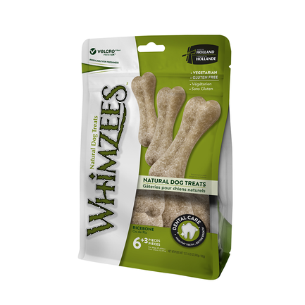 Totally edible and easily digestable, these vegetarian and all natural treats help to freshen breath and reduce build up on your dogs teeth. The vegetable-based texture will help remove plaque and tartar as they chew. Always have fresh water available.