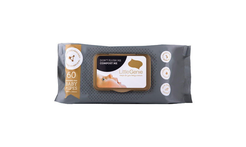 Little Genie | 1 x 60 Wipes | Biodegradable Bamboo Charcoal Baby Wipes | Fragrance Free​