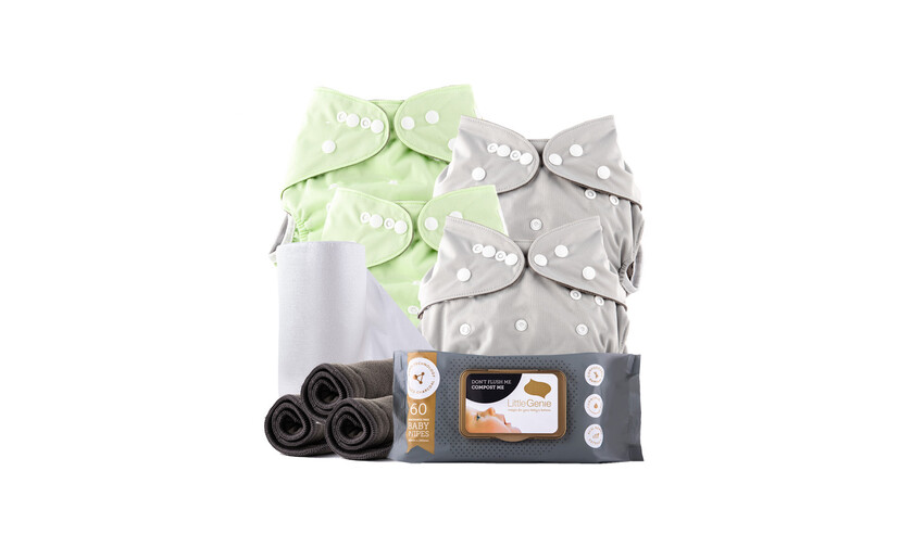 Little Genie | StarterPack | 4 Reusable Pocket Nappies | 1 Baby Wipe | 1 Booster | 1 Bio Liner